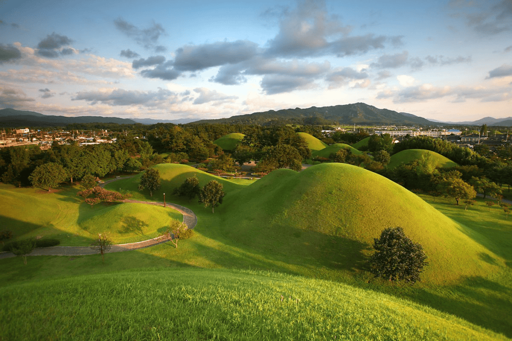 대릉원은 경주에서 가장 아름다운 곳 중 하나입니다. 푸른 잔디와 울창한 나무들이 어우러져 멋진 풍경을 만들어냅니다. 대릉원을 방문하면 신라의 역사와 문화를 느끼며, 힐링을 할 수 있습니다.