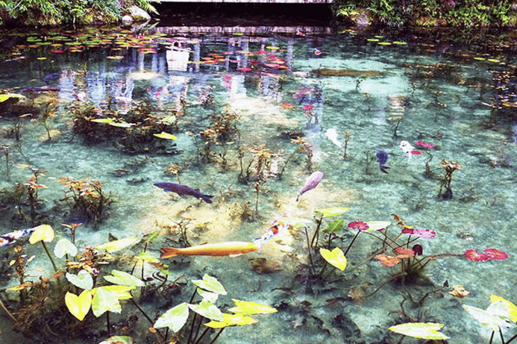 게로 온천에서 가까운 곳에는 ‘모네의 연못’으로 불리는 ‘나모나키 연못(名もなき池)’이 있습니다. 이곳은 물 속을 헤엄치는 잉어들과 맑고 신비로운 연못의 풍경 덕분에 클로드 모네의 그림을 떠올리게 해 ‘모네의 연못’이라 불리죠. SNS에서도 화제가 되며 많은 여행객들이 찾는 인기 명소로, 연못 위의 나무다리는 포토스팟으로 인기가 많습니다.