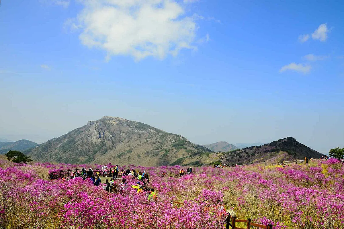 경남 창녕의 화왕산은 가을억새가 유명하지만, 봄에 찾아가면 또 다른 감동을 만끽한다. 산 전체가 연분홍 진달래로 물드는 때면, 6.5km에 이르는 긴 능선 코스가 끝없이 이어지는 꽃길로 변신한다.