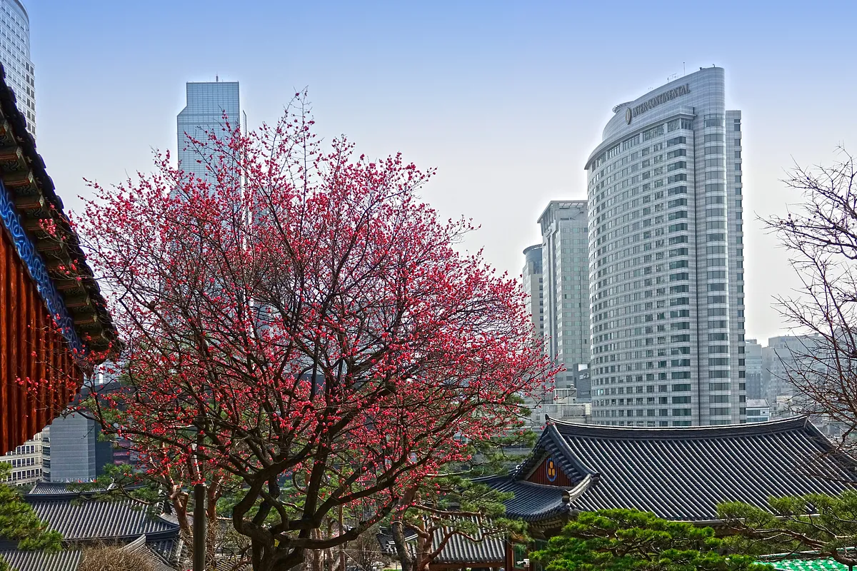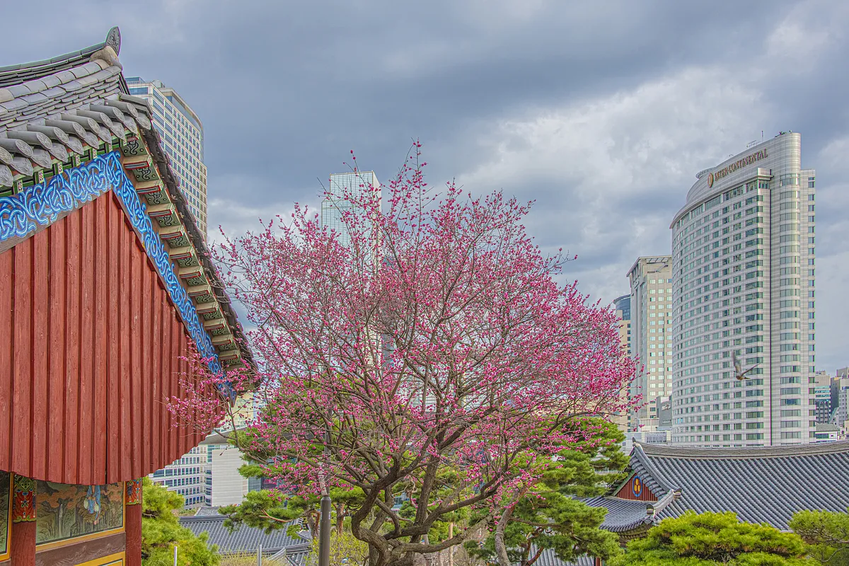 도심 한복판, 고요한 사찰 마당에서 홍매화가 꽃을 피웠다. 강남 코엑스 인근에 자리한 봉은사는 봄이 되면 매화와 목련이 어우러진 환상적인 풍경으로 또 다른 매력을 더한다. 서울에서 잠시 벗어나고 싶을 때, 복잡한 일상 속에서 잠깐의 쉼표를 찾고 싶다면 봉은사 매화 산책을 추천한다.