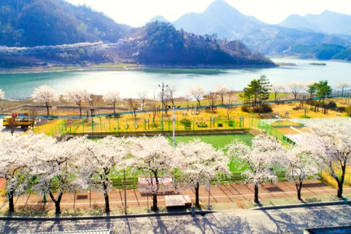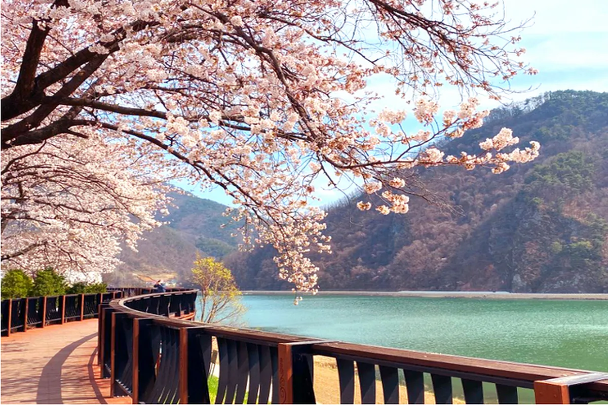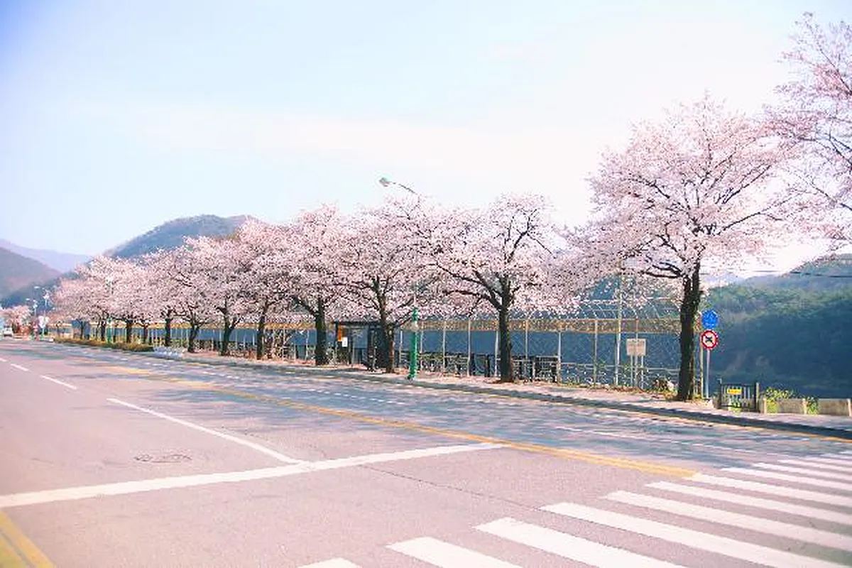 벚꽃이 만개한 봄밤, 충북 단양군 단양읍 상진리의 수변길이 낭만적인 산책로로 변신한다. 소노벨 단양부터 단양군 보건의료원까지 약 1.3km에 걸쳐 이어지는 이 길은 강을 따라 펼쳐진 야경이 매력적인 장소다. 꽃잎이 떨어진 길을 따라 걷다 보면, 머리 위로는 은은한 조명이 반짝이고 발밑에는 꽃들이 수채화처럼 펼쳐진다.