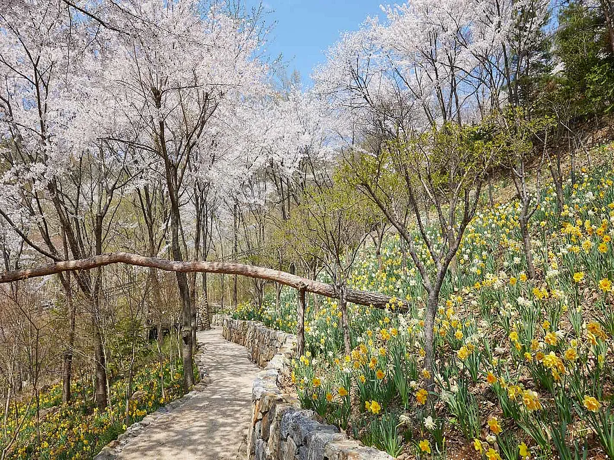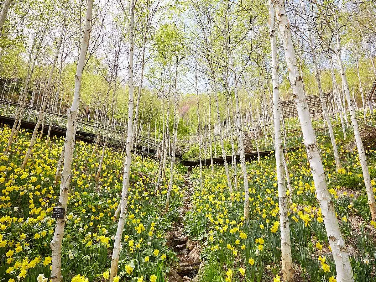 무엇보다 봄 시즌에는 노란 물결로 물드는 수선화가 시선을 사로잡는다. 숲 입구부터 자작나무숲까지 이어지는 40여 종의 수선화가 밝고 따뜻한 분위기를 연출한다. 햇빛 아래서 반짝이는 수선화 군락을 바라보다 보면, 일상 속 쌓였던 피로가 절로 풀리는 듯하다.