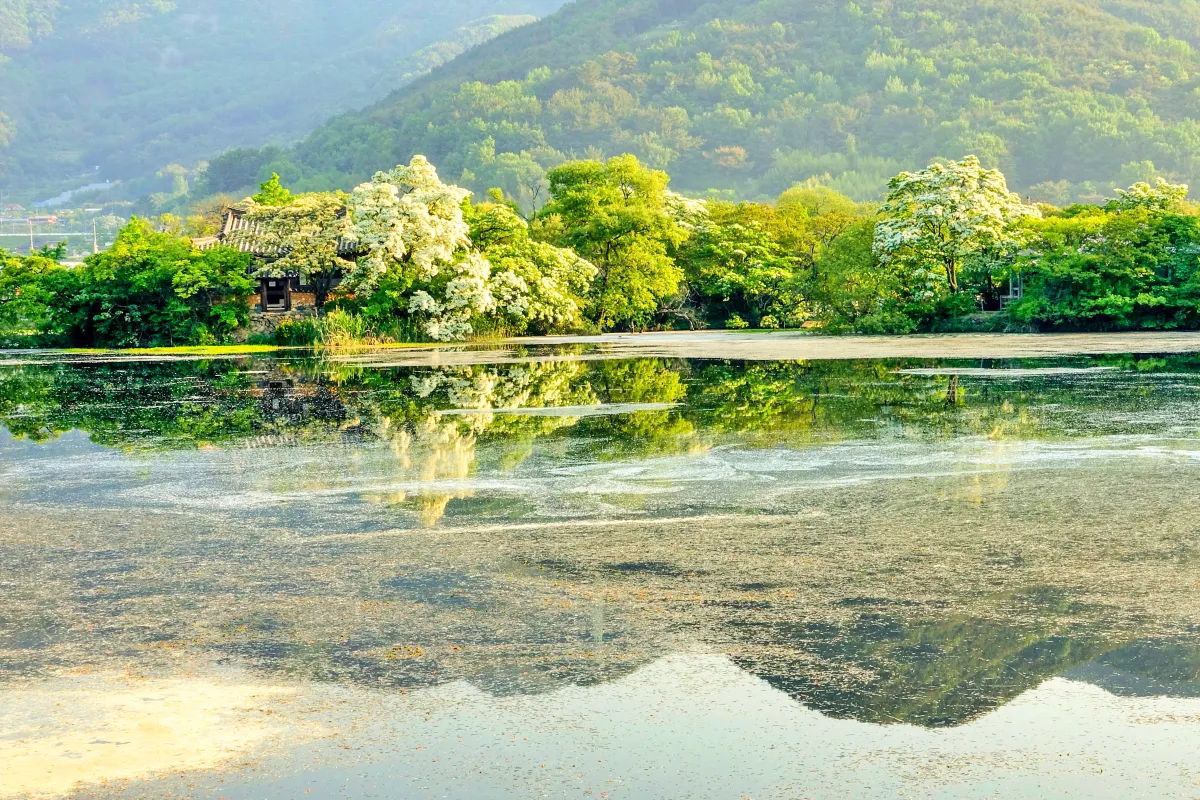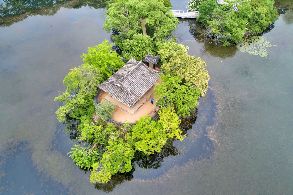 경남 밀양의 위양지는 ‘백성을 위하는 못’이라는 이름처럼 조선시대 선비들의 정서가 깃든 풍경이다. 위양지 중앙에는 완재정이라는 팔각 정자가 자리하고 있으며, 이팝나무가 주변을 감싼다.