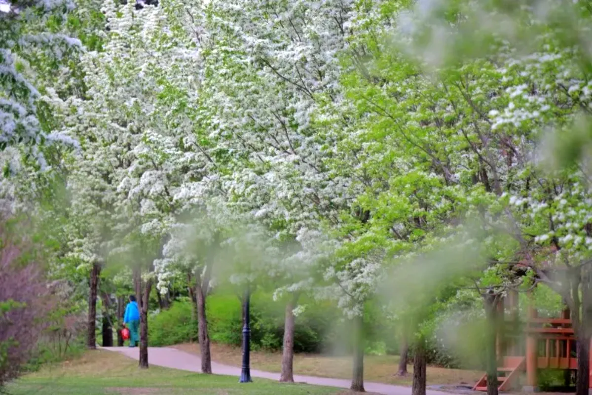 정부대전청사 인근의 들의공원은 도심 속 봄나들이 장소로 각광받고 있다. 5월이면 이팝나무들이 원형 산책로를 따라 늘어서, 마치 하얀 터널처럼 길게 이어진다.